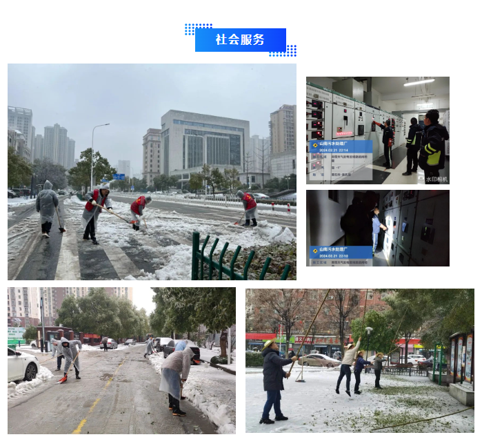 21日夜间,山南、汪仁污水处理厂全员到岗,连夜开展污水厂配电房线路排查和双回路导闸试验,确保正常运营,保障开发区工业企业生产废水和居民生活污水处理达标排放,避免污水外溢造成环境污染。22日上午,公司领导带队赴包保社区,开展道路除雪和临街树木除冰,消除断枝坠落隐患,确保社区道路通畅,群众安全出行;在包保路段,公司志愿者清理路面积雪和道路排水沟渠,为公交站台清出安全通道,守护居民“回家路”。