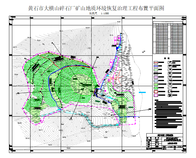 大横山碎石厂矿区位于汪仁镇以北约 2.0km,距离下陆区直距约 16.5km。治理区地理坐标为 东经115°07′3.75″,北纬30°10′12.76″。矿山南部有大棋路连接大冶市和河口镇,矿山 距大棋路直线距离约 3.5km,交通便利。