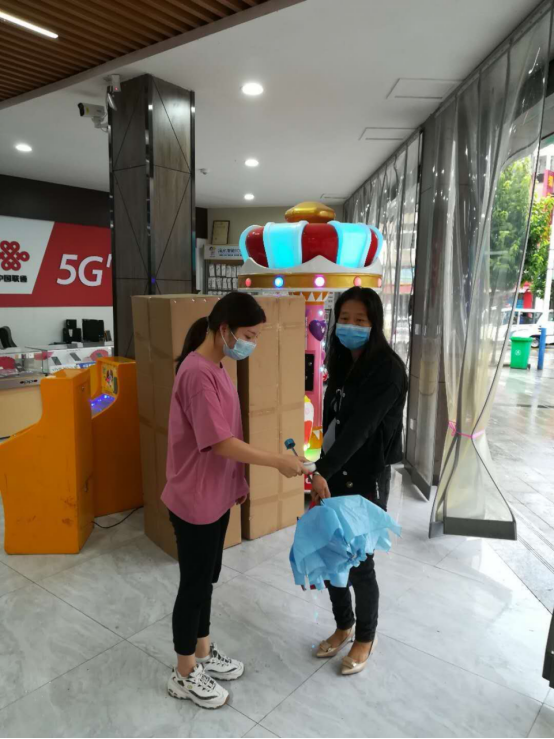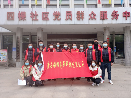 黄石高新物业公司董事长邹丹为社区科普宣教、助老助困等5支志愿服务队授旗并合影留念