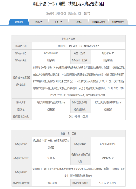 湖山新城(一期)电梯、扶梯工程采购及安装项目招标公告