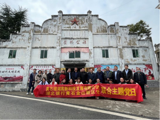 3月12日下午,磁湖高新公司联手湖北银行黄石分行,在位于大冶市灵乡镇的新四军鄂皖湘赣指挥部旧址,开展“学光荣党史,破思想之冰,聚发展之力”联合主题党日暨党员共建活动。磁湖高新公司党委班子成员,湖北银行黄石分行有关领导,部分业务部室、金山新区支行等负责同志出席活动。