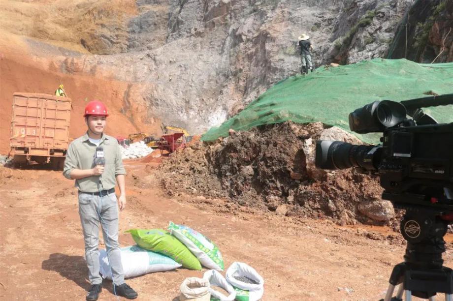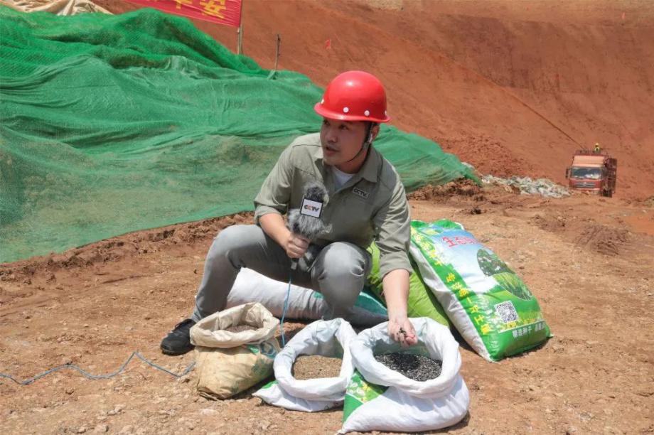 本次报道中,央视记者按照开山塘口修复的施工时间线,运用了“灰、淡黄、棕褐、绿”这四种颜色,向观众形象、通俗地展现了开山塘口修复治理的全过程。灰色是裸露的、“受伤”的山,淡黄色是干草打碎后形成的草纤维,棕褐色是混入不同种子后的泥浆,绿色则是希望、是健康、是矿山修复的终极目标。