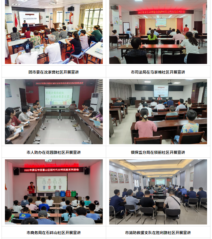 7月1日,《黄石市生活垃圾分类管理办法》正式施行。为进一步增强居民对生活垃圾分类知识的了解,自觉参与到垃圾分类的行动中来,倡导关爱自然、节约资源、爱护环境的文明风尚,连日来,我市各地各部门结合党员下沉社区以及周五志愿服务日等工作安排,在全市各社区广泛开展了形式多样的垃圾分类知识和相关法律法规宣传活动。