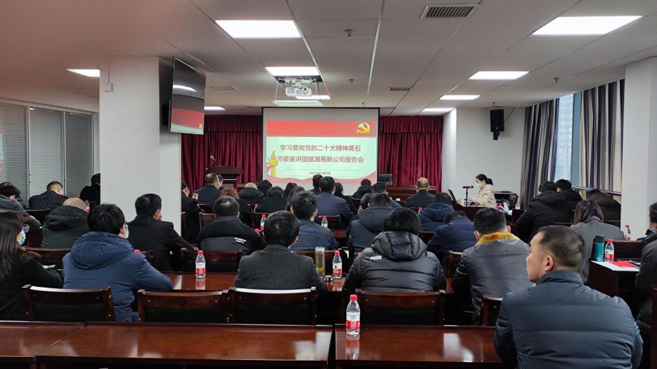 1月5日,学习贯彻党的二十大精神黄石市委宣讲团磁湖高新公司报告会举行。市委宣讲团成员、湖北理工学院马克思主义学院副书记、副教授范绪枝作专题辅导报告。公司党委副书记、总经理石汉松出席并讲话,公司领导班子成员,各部室正副职、子公司领导班子成员、各党支部全体党员参加活动。