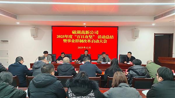 为实现“十四五”圆满收官及“十五五”良好开局,12月24日,磁湖高新公司召开“百日攻坚”总结暨事业群制改革启动运行大会。公司党委书记、董事长王绍军出席会议并讲话,党委副书记、总经理蔡华中主持会议。