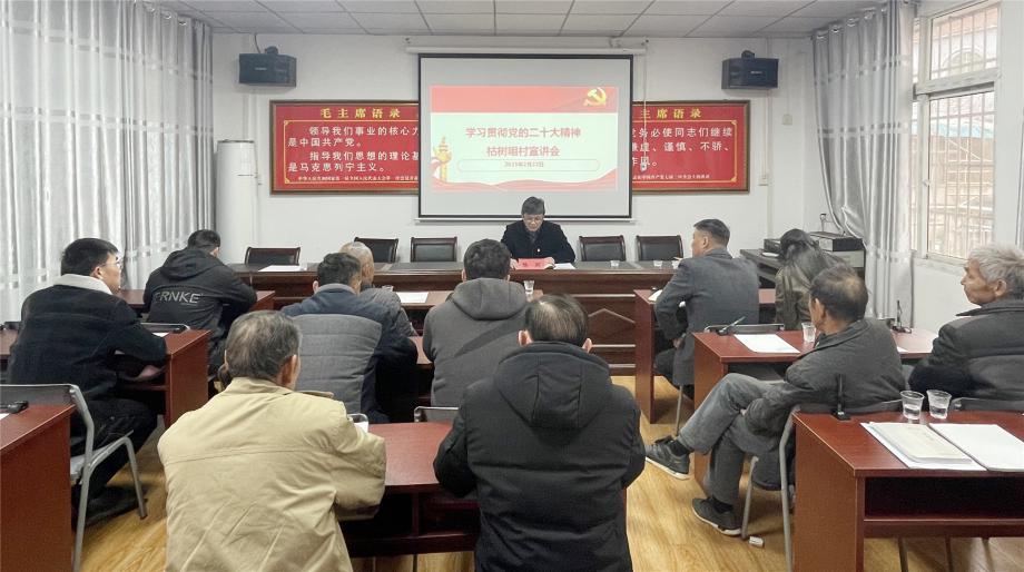 2月22日,磁湖高新公司党委委员、总会计师陆刚赴汪仁镇枯树咀村宣讲党的二十大精神,鼓励该村党员干部进一步提升乡村治理能力和水平,奋力谱写乡村治理新篇章。