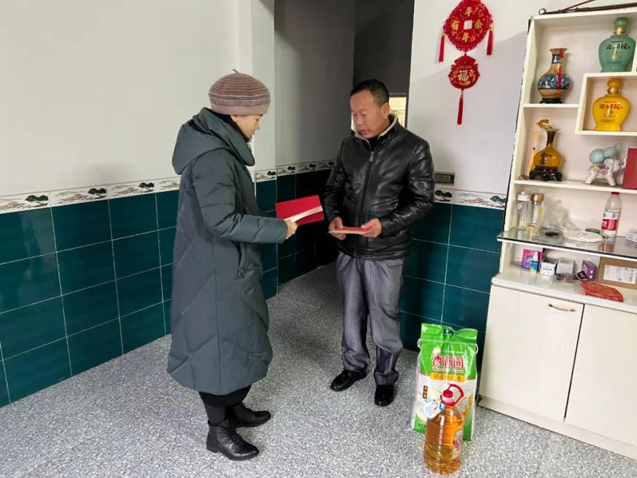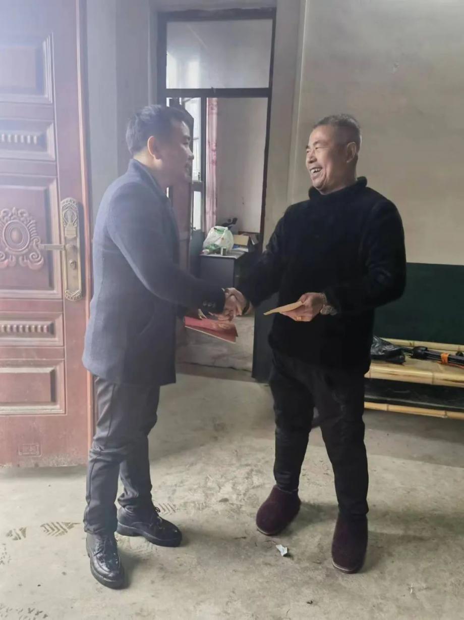在益昌村,公司领导分别为村里老人送去了米、油等生活必需品,与他们面对面聊家常,了解他们的生活近况,为他们送去节日的祝福,鼓励他们勤劳致富,坚定美好生活信心,把日子越过越好,并叮嘱他们保重身体,注意防寒保暖和居家安全;为困难大学生送去助学金,发放普法宣传册,鼓励他们努力学习,自觉尊法学法守法用法,争当新时代有为青年。