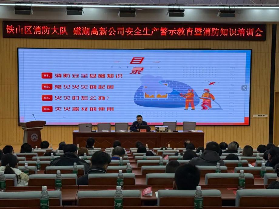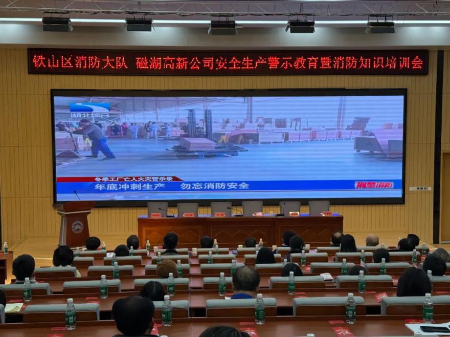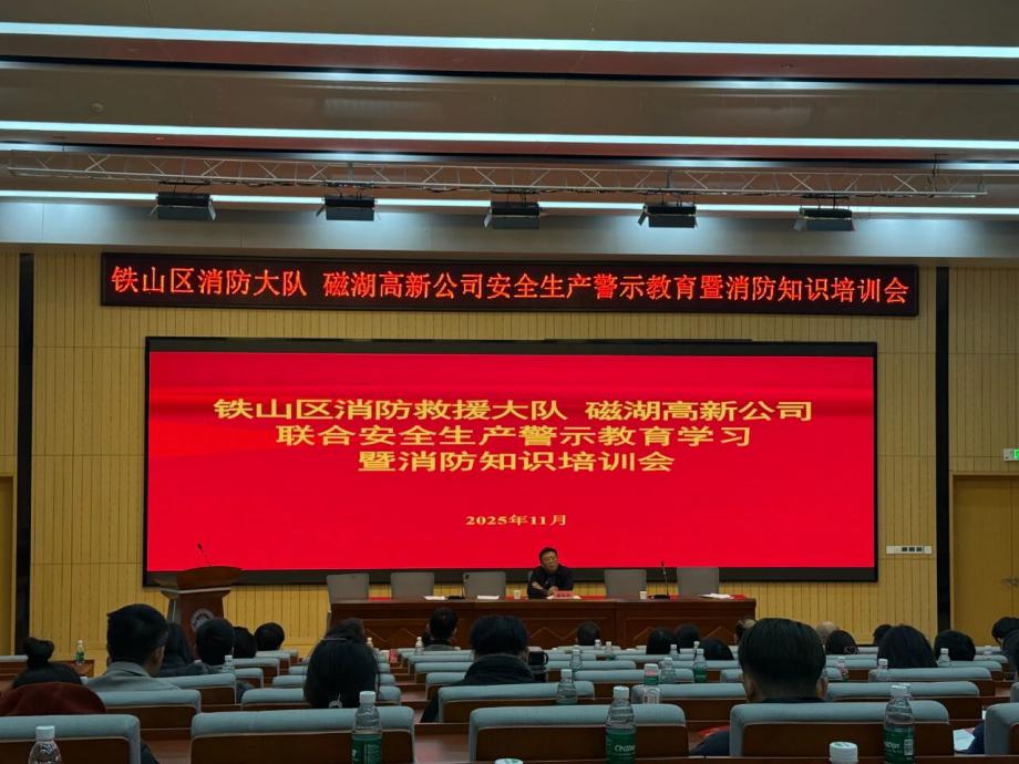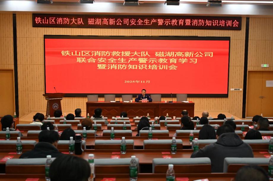为深刻汲取近期火灾事故教训,全面压实安全生产责任,切实提升园区整体消防安全管理水平,营造“119消防宣传月”浓厚氛围,铁山区消防救援大队与磁湖高新公司于11月19日联合举办安全生产警示教育学习暨消防知识培训会。会议聚焦“全民消防、生命至上——安全用火用电”主题,通过文件学习、警示教育、专业培训、责任落实与设备保障等多措并举,为企业安全生产与商户安全经营注入强心剂。区消防救援大队党委书记徐耀,磁湖高新公司党委副书记、总经理蔡华中出席会议并讲话,园区企业安全负责人、商业门面承租户代表等150余人参加会议。