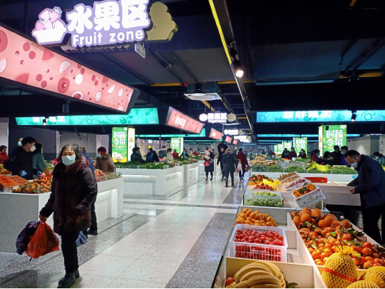 金山集贸市场占地面积8689.81㎡,总建筑面积11035.60㎡,由黄石磁湖科技发展有限公司建设运营,项目总投资额达6000万元,是一座集农贸、商业配套、邻里互动为一体的五层商业综合体,一楼设置农贸市场,面积约1606㎡,是严格按照全市A类农贸市场标准优化设计的新型智能化集贸市场,市场引进了信息化、智慧化理念,实现无线Wifi全覆盖、智能视频全监控、食品产地全溯源、进场货物全检测等功能,既为群众提供了优美的购物环境,也可实现线上线下同步服务,丰富了群众的“菜篮子”,还提供了部分就业岗位,实现了经济效益与社会效益“双赢”。