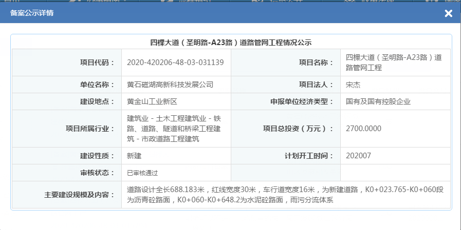 黄金山新区A26路(四棵大道-还建楼段)工程情况公示
