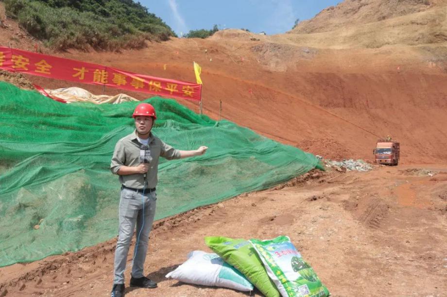 本次报道中,央视记者按照开山塘口修复的施工时间线,运用了“灰、淡黄、棕褐、绿”这四种颜色,向观众形象、通俗地展现了开山塘口修复治理的全过程。灰色是裸露的、“受伤”的山,淡黄色是干草打碎后形成的草纤维,棕褐色是混入不同种子后的泥浆,绿色则是希望、是健康、是矿山修复的终极目标。