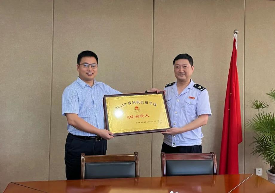 7月22日上午,公司举行纳税信用评级授牌仪式暨纳税人满意度调查座谈会。国家税务总局黄石经济技术开发区税务局副局长李克莉、收入核算科科长李国强分别为两家公司授牌。
