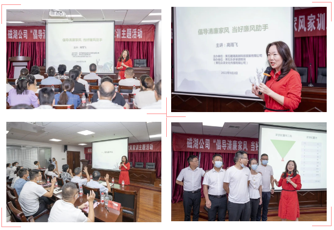 9月2日,磁湖高新公司组织开展“倡导清廉家风,当好廉风助手”家风家训主题活动,推动廉洁文化进家庭,引导干部职工家属当好“廉内助”,进一步筑牢反腐倡廉家庭防线。党委委员、纪委书记石华参加活动并讲话,党委办公室主任蔡华中主持活动,公司中层以上管理人员及家属参加活动。