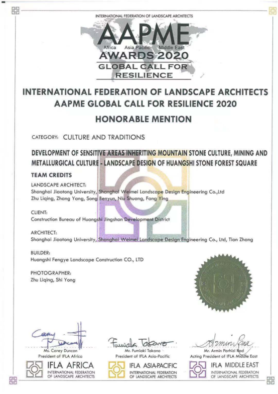 2020年,获国际风景园林师联合会亚非中东地区荣誉奖。